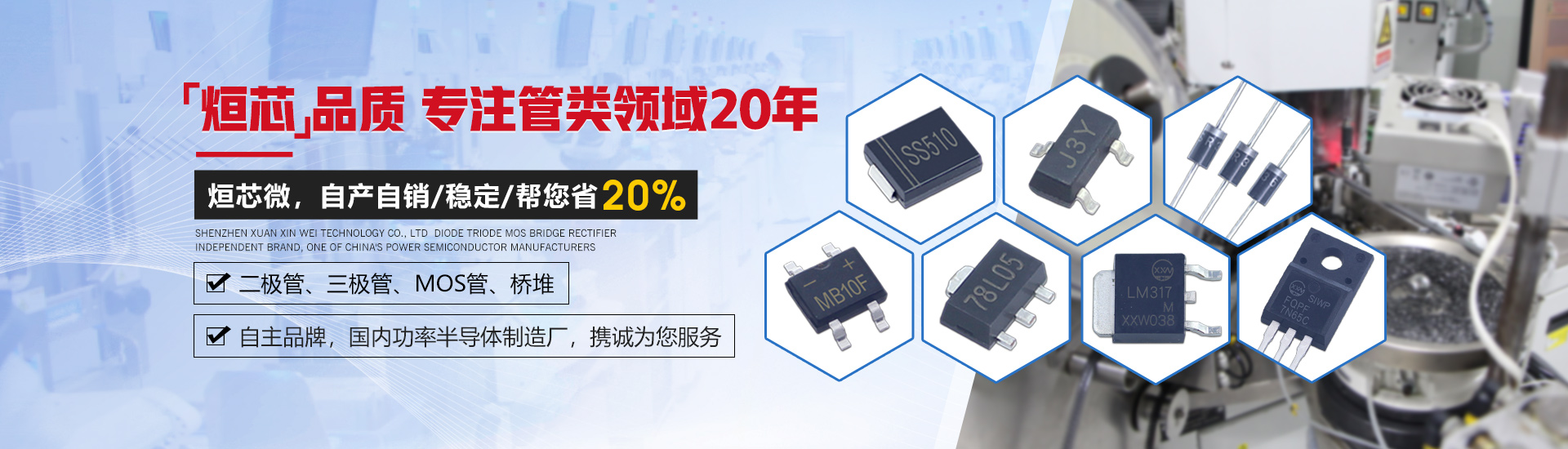 深圳市烜芯微科技有限公司是一家集研發(fā)、生產(chǎn)、銷(xiāo)售于一體,專(zhuān)注于二極管、三極管,MOS管、橋堆等功率半導(dǎo)體領(lǐng)域發(fā)展的企業(yè)。采用國(guó)際領(lǐng)先的GPP芯片生產(chǎn)工藝及一心多Die高精密制造工藝,擁有功率半導(dǎo)體器件工程實(shí)驗(yàn)室,全自動(dòng)高精密生產(chǎn)設(shè)備,產(chǎn)品層層把控,全程可追溯,保障了每只產(chǎn)品的卓越品質(zhì)。 產(chǎn)品封裝包括SMA,SMAF,SMB,SMBF,SMC,SOD-123,SOD-123FL,SOD-323,SOD-323FL,SOD-523,SOD-723,SOT-23,SOT-89,SOT23-3L,SOT23-5L,SOT23-6L,SOT-223,SOT-523,SOT-723,DO-41,DO-15,DO-27,DO-35,R-1,R-6,LL-34,LL-41,TO-277,TO-92,TO-92S,TO-92L,TO-126,TO-251,TO-252,TO-262,TO-263,TO-220,TO-220F,TO-247,TO-3P,TO-264,MBS,MBF,MBM,ABS,UMB,UMSB,DB,DBS,D3K,KBP,GBP,GBU,GBL,GBJ,KBL,KBU,KBJ,KBPC,KBPC6,KBPC8,KBPC-W,DNF,TSSOP-8,TSSOP-16,SOP-4,SOP-6,SOP-8,SOP-10,SOP-14,SOP-16,DIP-4,DIP-6,DIP-8,DIP-10,DIP-14,DIP-16,月產(chǎn)各封裝達(dá)6億只。 公司通過(guò)了ISO14001環(huán)境管理體系認(rèn)證,產(chǎn)品均獲得了ISO9001質(zhì)量體系認(rèn)證、UL、SGS等認(rèn)證,符合歐盟最新RoHs指令。擁有和致力于烜芯微/XXW自主品牌產(chǎn)品的推廣,提供技術(shù)支持,選型替換,cost down方案及擁有專(zhuān)業(yè)的生產(chǎn)管理團(tuán)隊(duì)和銷(xiāo)售團(tuán)隊(duì),保證了供貨穩(wěn)定及售前選型服務(wù)等問(wèn)題。 公司產(chǎn)品廣泛應(yīng)用于開(kāi)關(guān)電源、適配器、逆變器、控制器、汽車(chē)電子、家用電器、通訊設(shè)備、無(wú)線充、鋰電池保護(hù)板、驅(qū)動(dòng)電機(jī)、安防警報(bào)、太陽(yáng)能光伏產(chǎn)業(yè)等多個(gè)領(lǐng)域。取得了國(guó)內(nèi)外眾多品牌大廠的認(rèn)可與合作,我們將堅(jiān)持奉行“烜芯品質(zhì),誠(chéng)信經(jīng)營(yíng),合作共贏”為公司經(jīng)營(yíng)理念!竭誠(chéng)為新老客戶(hù)提供優(yōu)質(zhì)的產(chǎn)品及服務(wù)。