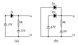 (a)圖中,拿掉二極管D可知,D陽極電位為-15v,陰極電位為-12v,D正向電壓為-3v,故D不導(dǎo)通,AO兩端電壓為-12V。